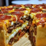 Deep-Dish Pizza Burger Pie is a delightful dish that combines the best of pizza and burgers into one amazing recipe. I remember the first time I came across this recipe. It was a chilly winter evening, and my family wanted something warm and comforting. The idea of a pizza burger appealed to everyone, and we decided to give it a try. The aroma filled our home, and soon, our kitchen felt cozy and inviting. People love this dish because it’s hearty, delicious, and perfect for sharing. It’s worth trying because it brings everyone together for a fun meal that’s truly unique and satisfying.