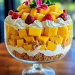 Tropical Mango Strawberry Cheesecake Trifle is a delightful dessert that combines the sweet flavors of fresh fruits with the creamy goodness of cheesecake. This treat brings back memories of summer barbecues and family gatherings, where everyone would come together to enjoy something special. People love this recipe not just for its taste but also for how it looks. The vibrant colors of mangoes and strawberries make it a feast for the eyes and a celebration for the taste buds. It’s a wonderful dish to try if you want to impress your family or friends, bringing a taste of the tropics right to your kitchen!